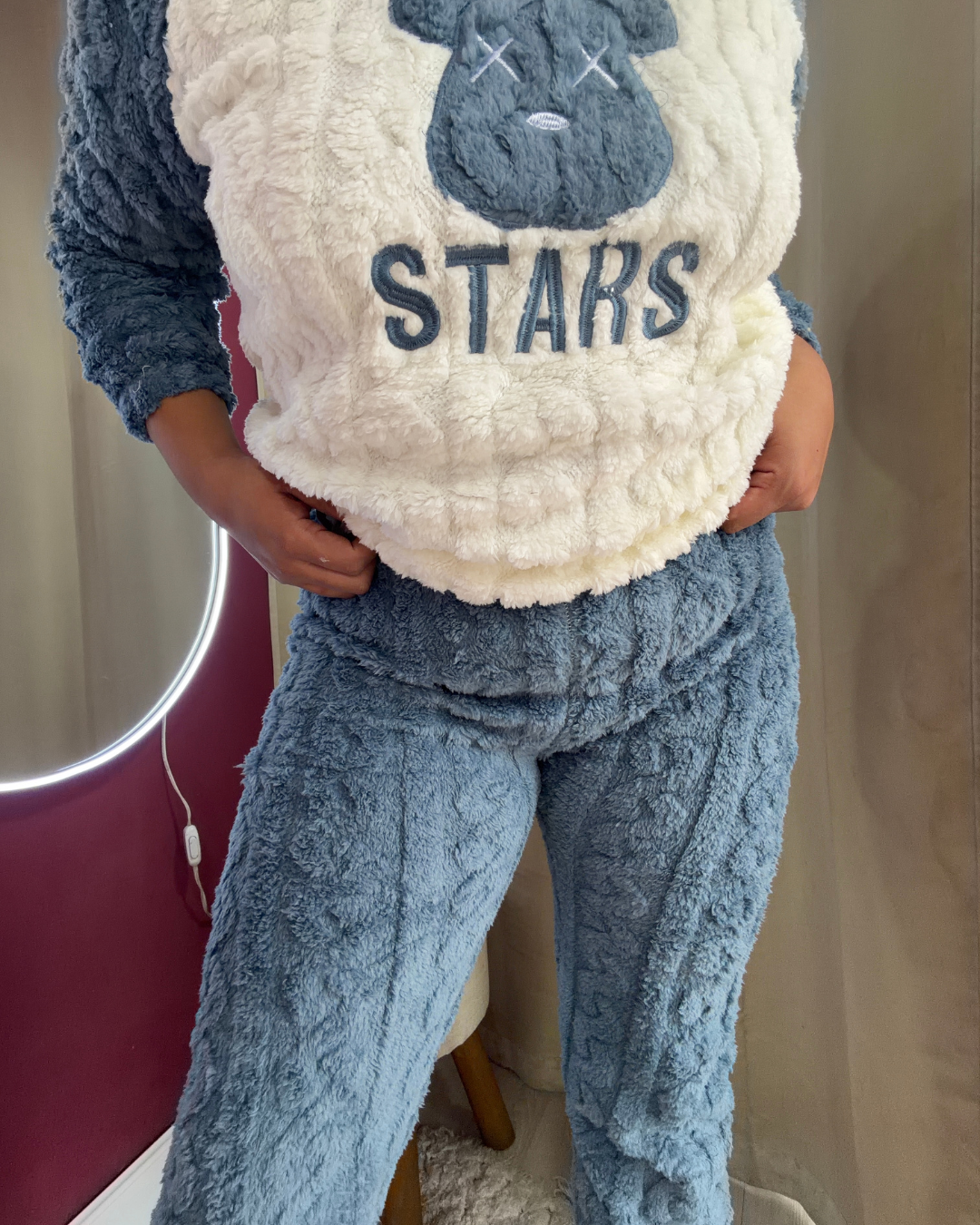 Pijama cómodo y abrigado, ideal para el día a día. El buzo cuenta con puños en las mangas y elástico en la parte inferior, lo que permite un mejor ajuste al cuerpo. El pantalón también posee puños en los tobillos, brindando mayor comodidad y un calce perfecto.