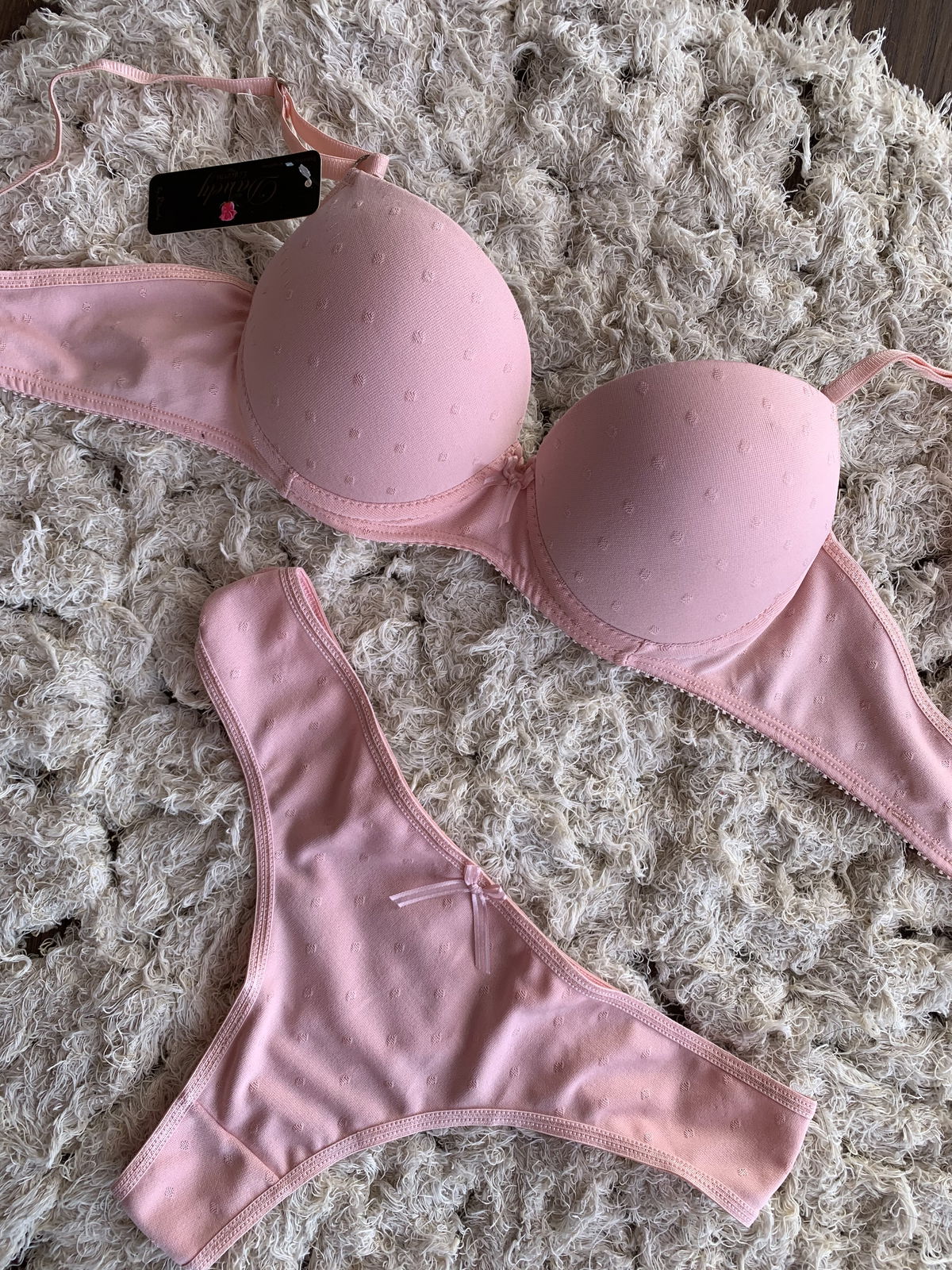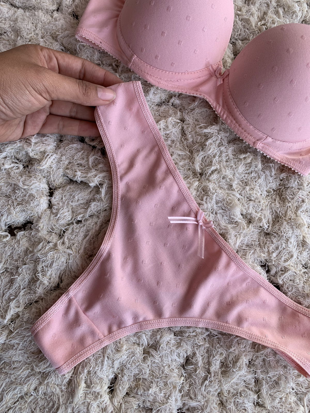 Conjunto confeccionado en microfibra de alta calidad, súper suave al tacto y de excelente calce. El corpiño viene armado, con taza soft y aro, ideal para dar forma y soporte sin sacrificar comodidad. La bombacha es colaless, femenina y sensual, perfecta para uso diario o para ocasiones especiales.