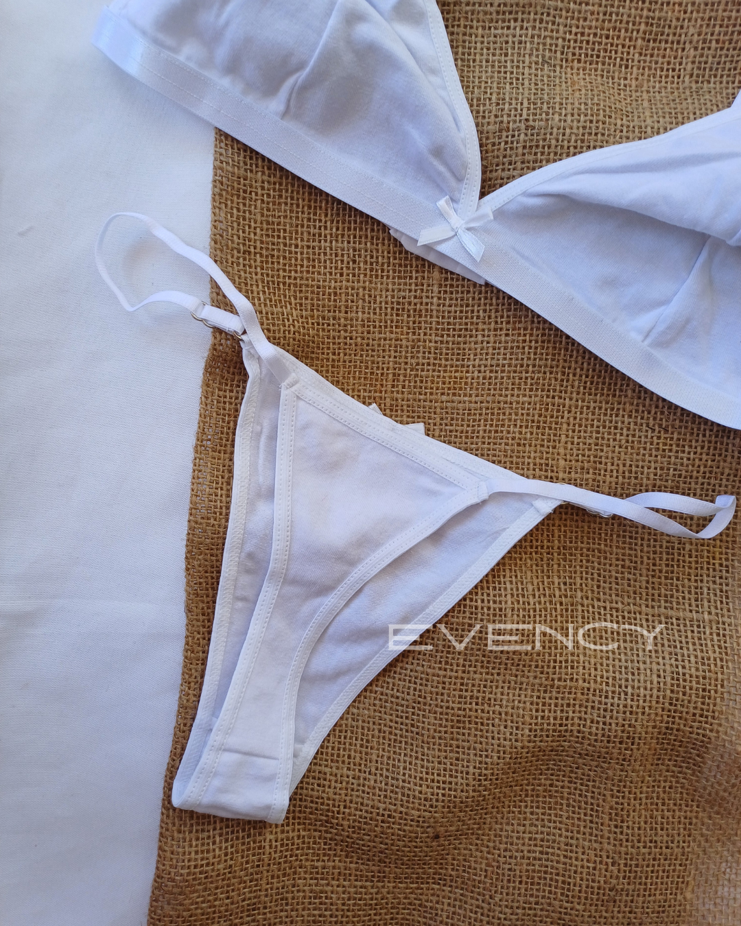 Cómodo, delicado y con un toque femenino encantador. Este conjunto está confeccionado en suave algodón, ideal para el uso diario sin dejar de lado el estilo. El bralette cuenta con bajo busto reforzado para mayor sujeción y un diseño simple pero coqueto, realzado con un moño decorativo al centro. La bombacha colaless es regulable para un calce perfecto y también incluye un moño a juego que suma un detalle dulce y sensual. Una opción ideal para sentirte cómoda y linda todos los días.