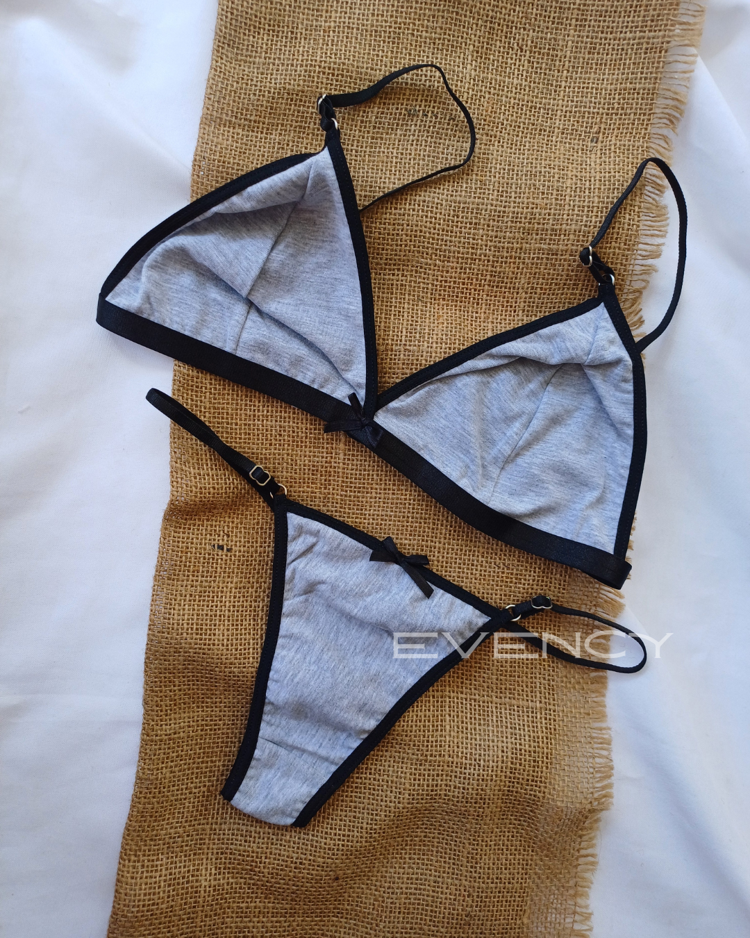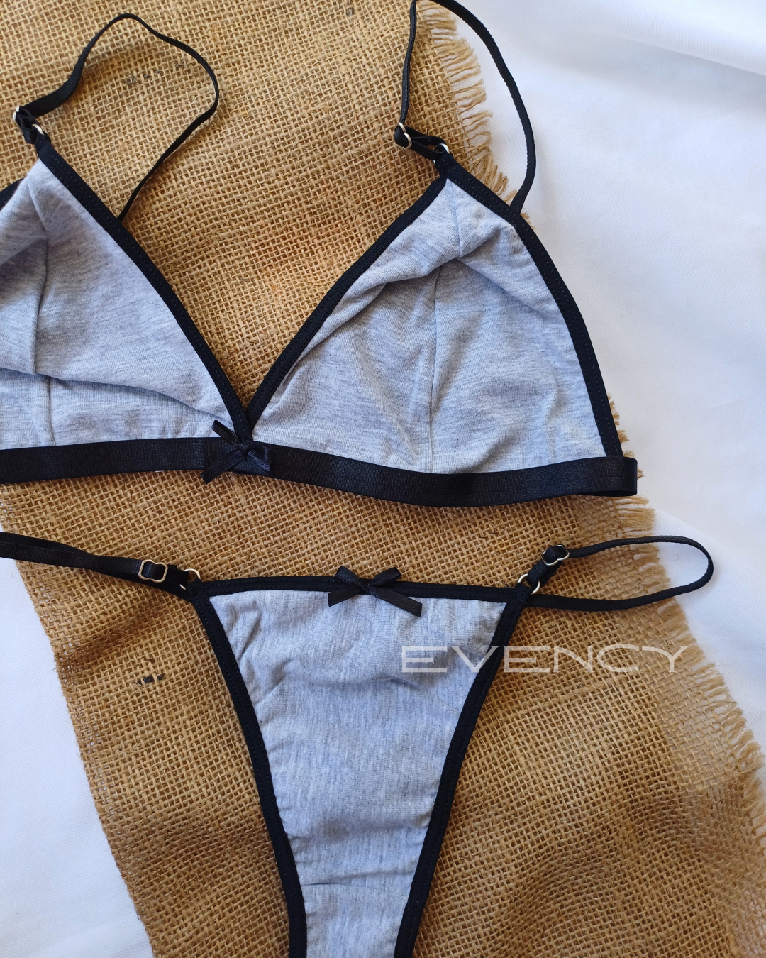 Cómodo, delicado y con un toque femenino encantador. Este conjunto está confeccionado en suave algodón, ideal para el uso diario sin dejar de lado el estilo. El bralette cuenta con bajo busto reforzado para mayor sujeción y un diseño simple pero coqueto, realzado con un moño decorativo al centro. La bombacha colaless es regulable para un calce perfecto y también incluye un moño a juego que suma un detalle dulce y sensual. Una opción ideal para sentirte cómoda y linda todos los días.