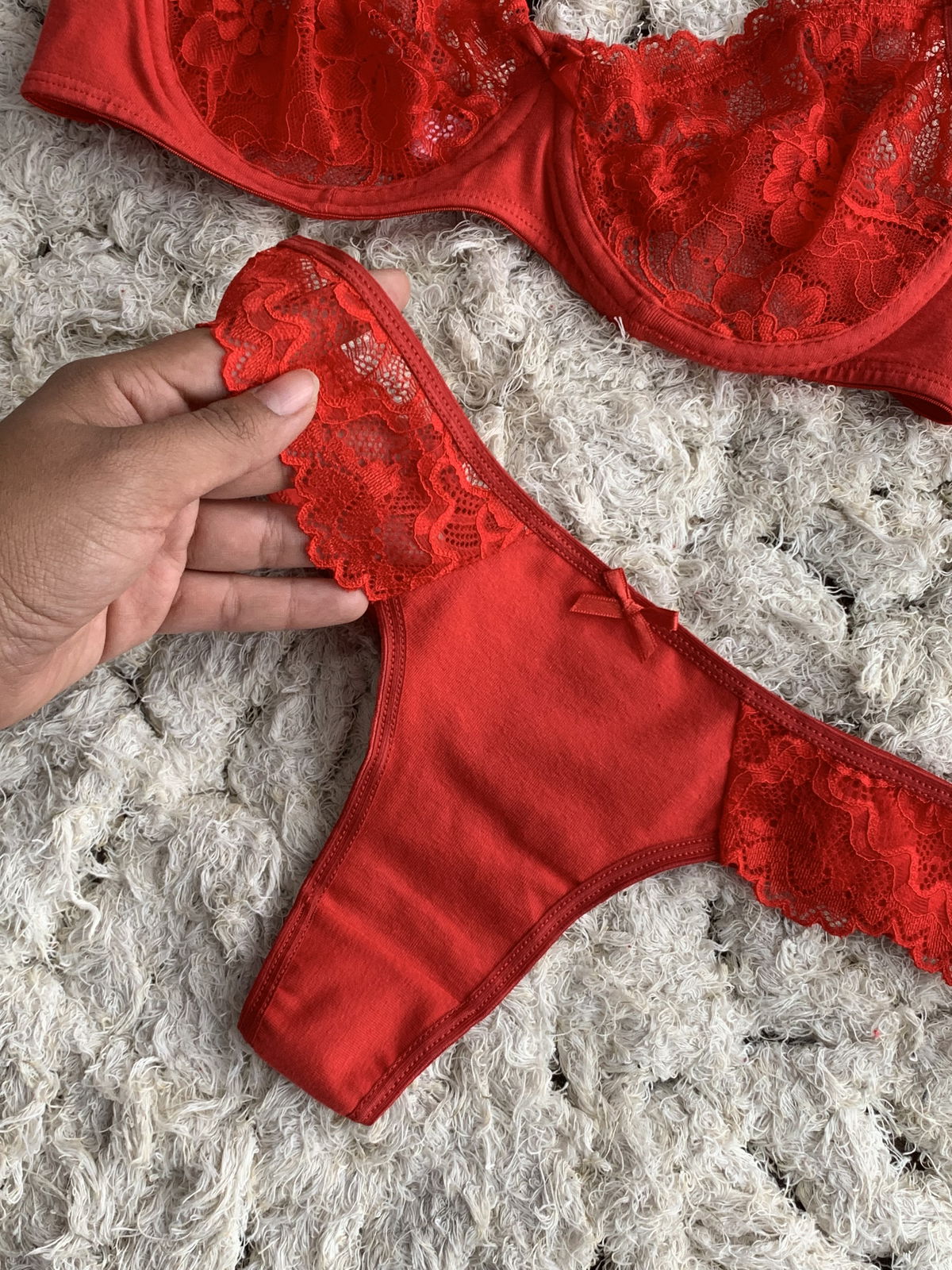 Este conjunto tiene todo: algodón súper suave, puntilla delicada y un toque de amor con ese moñito que no puede más. El corpiño con aro te da el soporte justo y la bombacha tanga calza perfecto. Ideal para todos los días… o para cuando quieras mimarte un poquito más ✨
