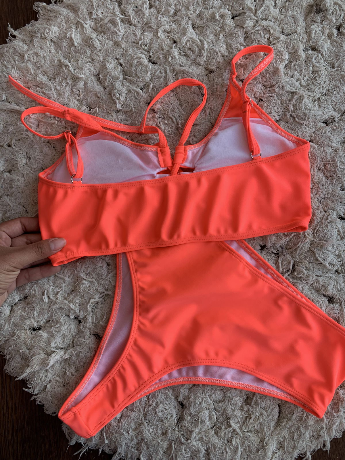 Conjunto de dos piezas, top con detalle de nudo frontal y bombacha clásica de corte cómodo, tiro alto. Ideal para combinar estilo y comodidad en la playa o la pileta.
