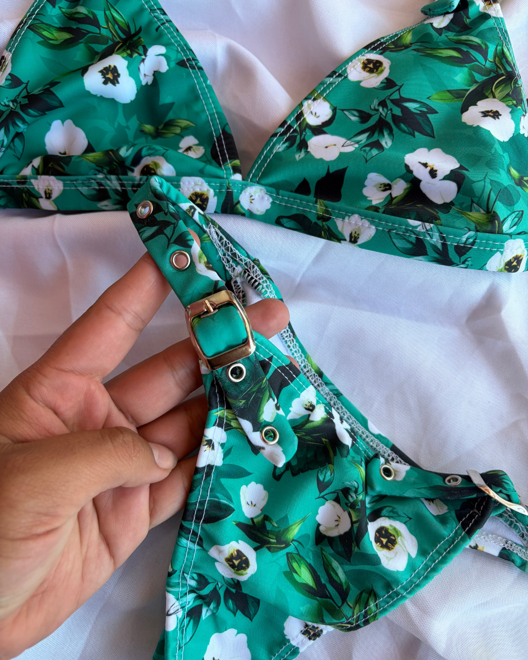 Bikini triangulito, detalle de tiras con hebilla, regulable